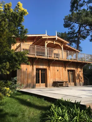 Superb contemporary wooden villa with pool, between Basin and ocean