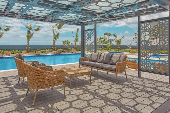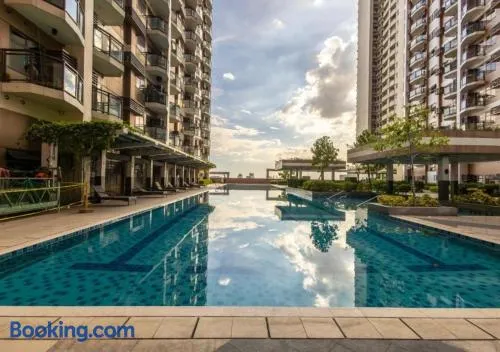 Luxury apartment with private pool, garden view, and wellness facilities in Pasay City.