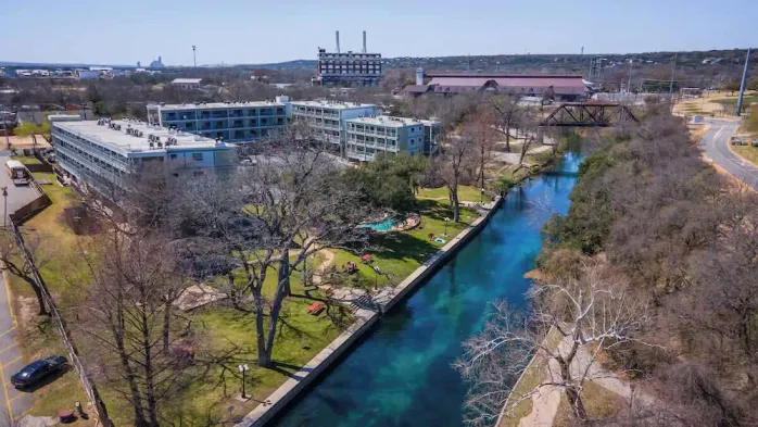 Condo with 2 pools, 4 hot tubs, and private river access near theme parks in New Braunfels.