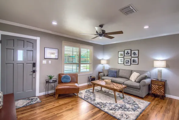Escape to a vintage riverfront gem! This stylish 2BR/2BA retreat features modern interiors, a private sunset porch, and direct Guadalupe access. Minutes from Gruene and Schlitterbahn—perfect for those seeking a luxury stay with soul.
