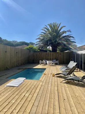 Mimizan Plage: villa ***** - 5 rooms - 6/10 persons, swimming-pool....