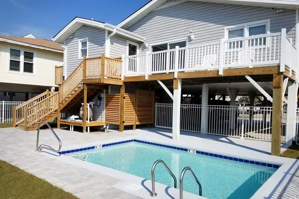 Waterfront 4 BR house w/pool & dock. Just steps to the beach. Pet Friendly.