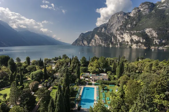 Relax in a luxurious hotel with indoor and outdoor pools, a full-service spa, and a restaurant in Riva del Garda.