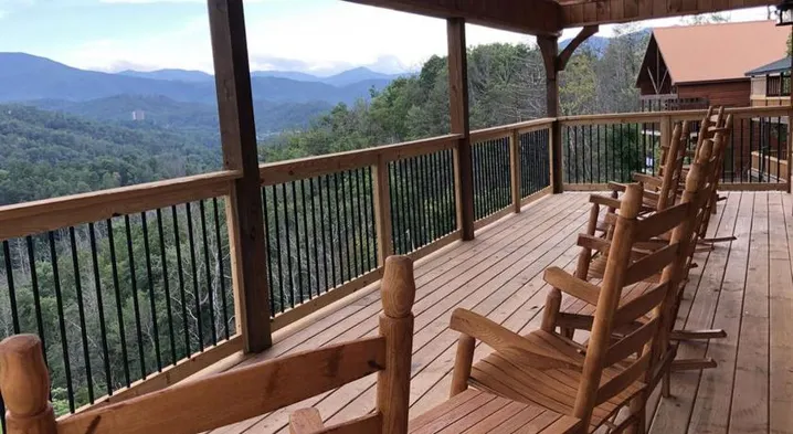 Luxury cabin with stunning mountain views, hot tub, game room, and close to Pigeon Forge attractions. Perfect for family getaways.