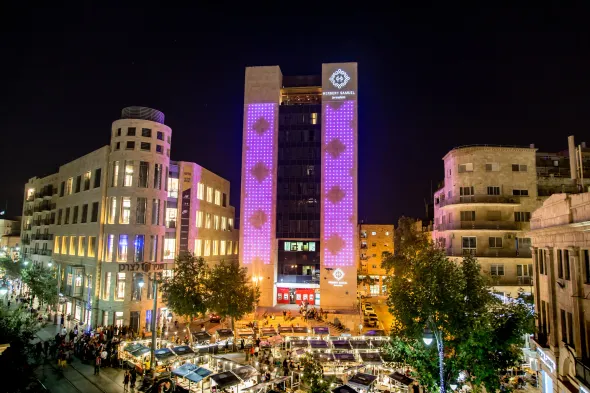 Luxury spa hotel with indoor and outdoor heated pools, located near Zion Square and Ben Yehuda Street in Jerusalem.