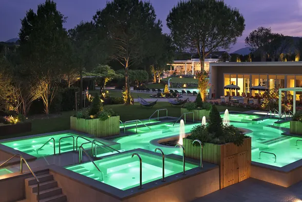 Relax at a luxury hotel with 2 indoor and 2 outdoor swimming pools, a spa, and gourmet dining in Montegrotto Terme.