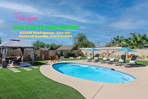 Near Old Town & ASU Campus Offering Heated Pool,Covered Gazebo,Yard Games & more