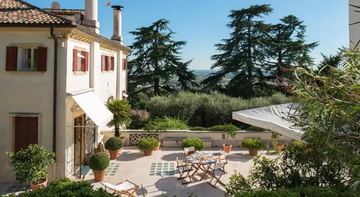 Luxury hotel with a seasonal outdoor pool, gourmet Mediterranean dining, and stunning views near Dolomites and Castle of Caterina Cornaro.