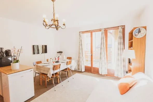 Apartment in chalet, at the foot of the slopes, garage, terrace, wifi.