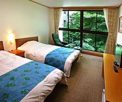 Relax in a luxury ryokan with hot springs, golf course access, and three on-site restaurants in Iwaki, Japan.