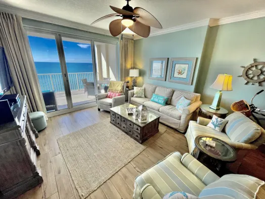Luxury resort unit with outdoor pool, fitness facilities, and a short walk to the beach in Panama City Beach.