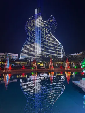 luxury guest suite with hard rock guitar view.