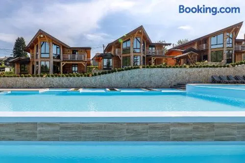 5-star resort in Truskavets with large spa, indoor and outdoor pools, tennis courts, and diverse dining options.