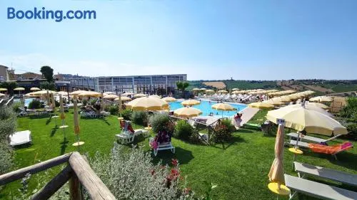 Relax at this beach hotel featuring a private beach, outdoor pool, and on-site dining options in San Benedetto del Tronto.
