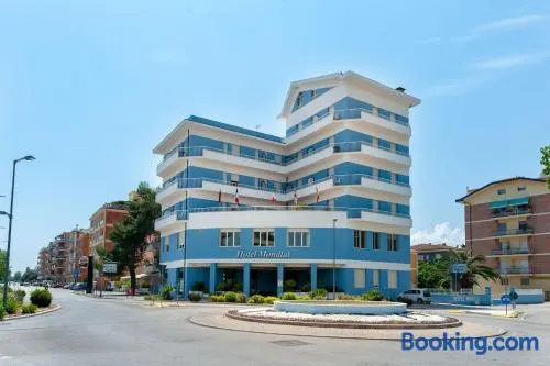 Beachfront hotel with seasonal outdoor pool, rooftop terrace, and local cuisine restaurant in Pesaro.