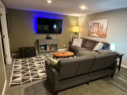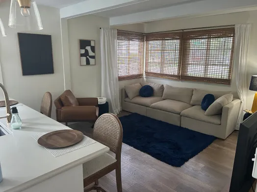 Elegant two-bedroom vacation home in Lincoln with a garden, fitness facilities, and bicycles included for your stay.