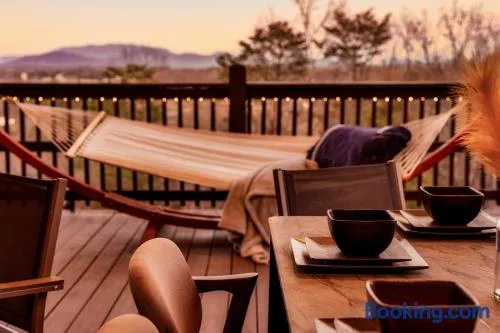 Resort with sauna, pool & barbeque | Mountain view