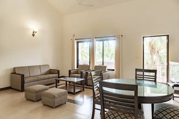 Hotels with kitchens in Goa often come equipped with a range of amenities aimed at providing a comfortable and convenient stay. Typically, these kitchens include essential appliances like a refrigerator, microwave, stove, and sometimes a dishwasher. Utensils, cookware, and dining sets are usually provided, enabling guests to prepare and enjoy meals in the comfort of their own space. Additionally, many hotels offer other conveniences like a dining area, complimentary grocery delivery services, and even cleaning services to ensure a hassle-free experience.