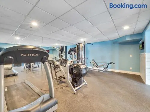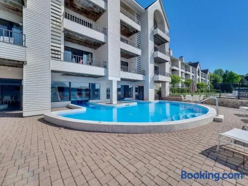 Relax in a holiday home with an indoor pool, hot tub, sauna, and dining options near Lake Michigan and Charlevoix Beach.