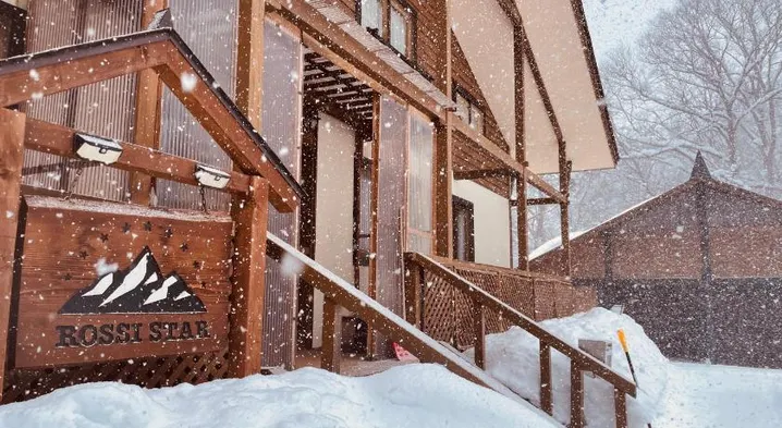 Luxury hotel with ski-in/ski-out access, hot tub, and free area shuttle in Hakuba's stunning mountains.