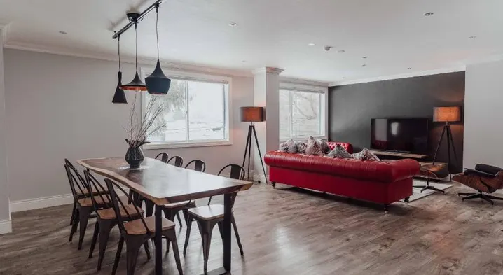 Luxury hotel with ski-in/ski-out access, hot tub, and free area shuttle in Hakuba's stunning mountains.