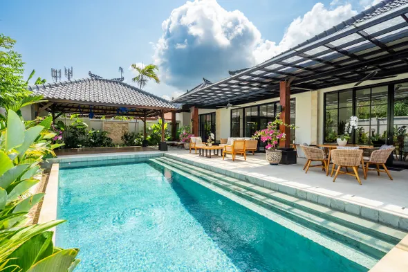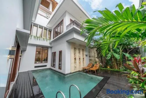 Experience luxury in a villa with private pools, a spa, and close proximity to Sanur Beach.