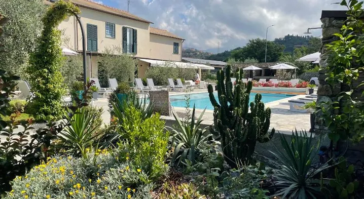 Luxury hotel with outdoor pool, on-site restaurant, and stunning views in Sestri Levante, near Libera Beach.