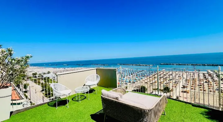 Relax at this beach hotel featuring a full-service spa, swimming pool, and on-site dining in Rimini.