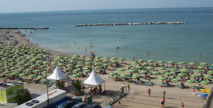 Beach hotel in Rimini with private beach access, hot tub, and bicycle rental for a relaxing getaway.