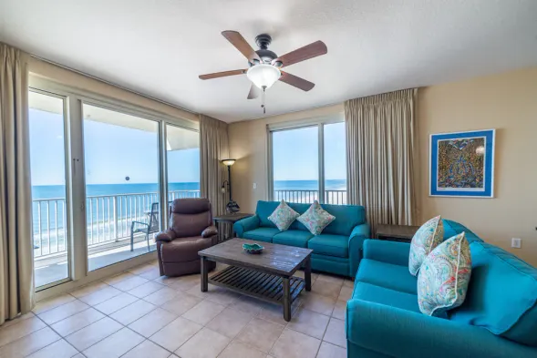 Beachfront condo with swimming pool, hot tub, and spacious rooms near Panama City Beaches and Pier Park.