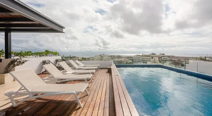 Centrally located aparthotel in Playa del Carmen with outdoor pool and rooftop terrace, exclusively for adults.
