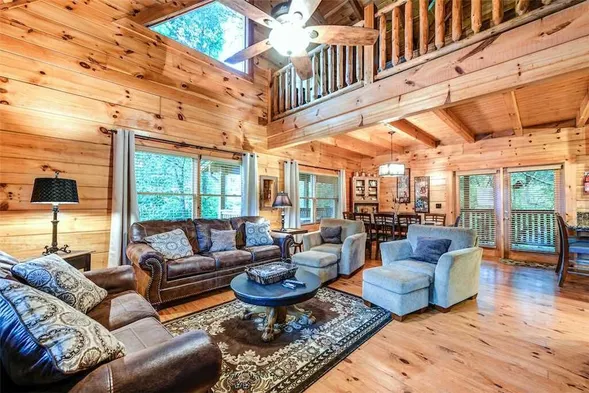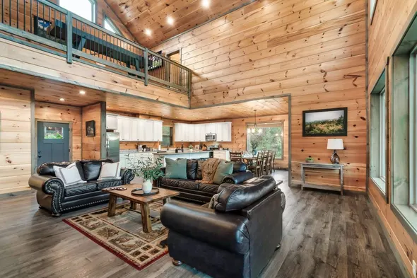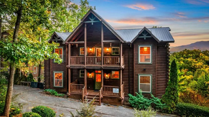 Experience a wolf-themed lodge with a hot tub, game room, and fire pit, just minutes from Pigeon Forge attractions.
