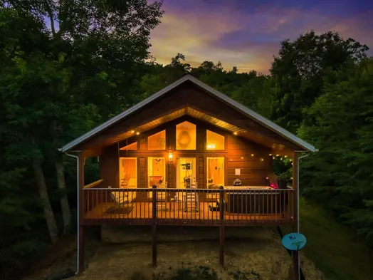 Beautiful three-level log cabin with hot tub, gas fireplace, and two covered decks in Pigeon Forge's natural setting.