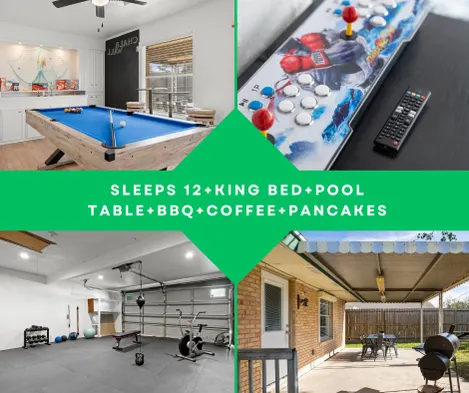 King Bed+Pool Table+Arcade+BBQ+Gym+Pancakes+Coffee
