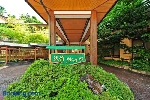 Relax in a ryokan with hot springs, sauna, and two restaurants, just a short walk from Minakami Onsen.