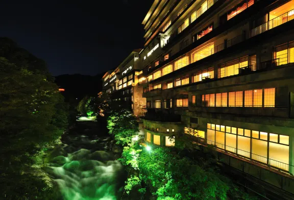 Relax in a ryokan with hot springs, stunning views, and a restaurant near Takaragawa Hot Spring in Minakami.