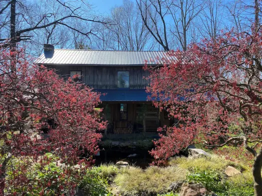 Charming Log Cabin Retreat with Flower Garden