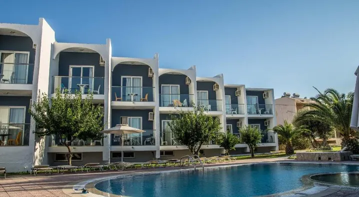 Aparthotel with seasonal outdoor pool, restaurant, and garden in Faliraki, 1.5 km from the beach.