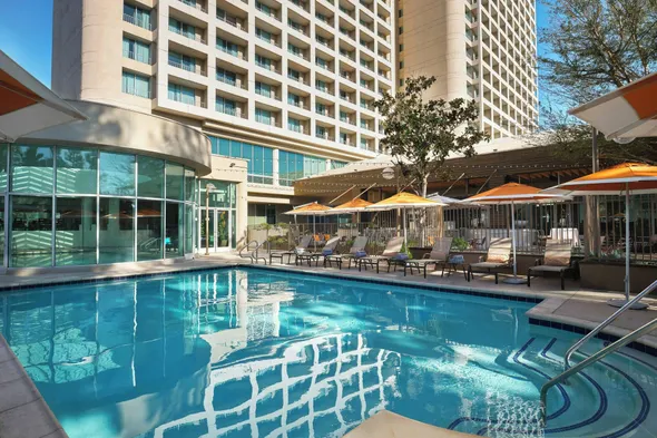 Enjoy a luxurious stay with indoor and outdoor pools, a hot tub, and a restaurant in Woodland Hills.