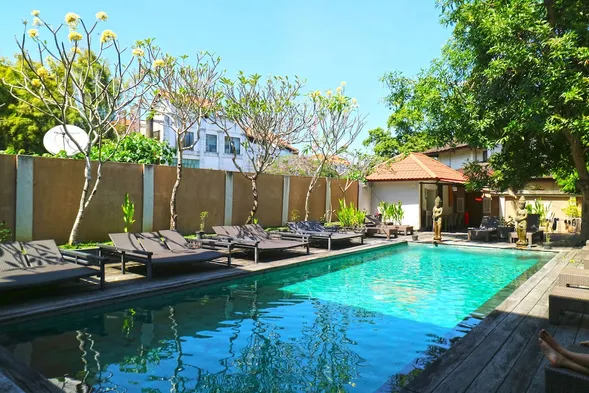 Centrally located hotel in Kuta with an outdoor pool, garden views, and on-site Indonesian dining options.