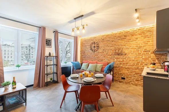 Stylish apartment in the heart of Wroclaw with kitchenettes and professional cleaning services.
