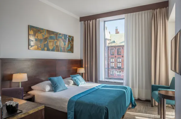 Centrally located hotel in Wroclaw with a 24-hour health club, sauna, and bicycle rentals for an active stay.