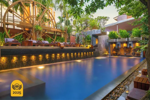 Luxury resort with 2 outdoor swimming pools, full-service spa, and a restaurant in the heart of Siem Reap.