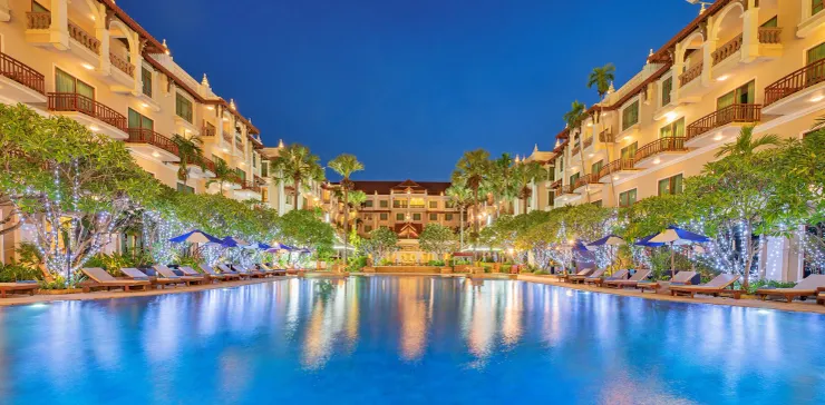 Luxury resort with outdoor pool, spa services, and three restaurants in the heart of Siem Reap.