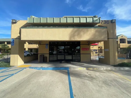 Comfortable hotel with air-conditioned rooms, kitchens, and free self-parking near Swan Day Spa in San Dimas.
