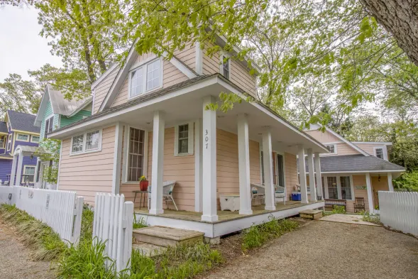 Charming beach cottage with outdoor space, near Lake Michigan, perfect for family getaways.