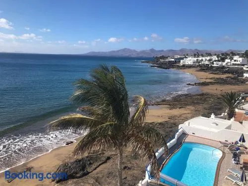 Spacious luxury apartment with stunning sea views, community pool, and direct beach access in Puerto del Carmen.