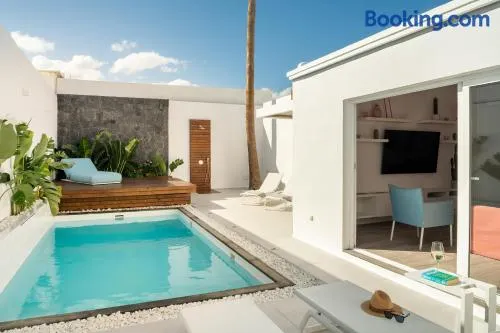 Enjoy a relaxing stay with an outdoor pool, hot tub, and dining options near Pocillos Beach in Puerto del Carmen.