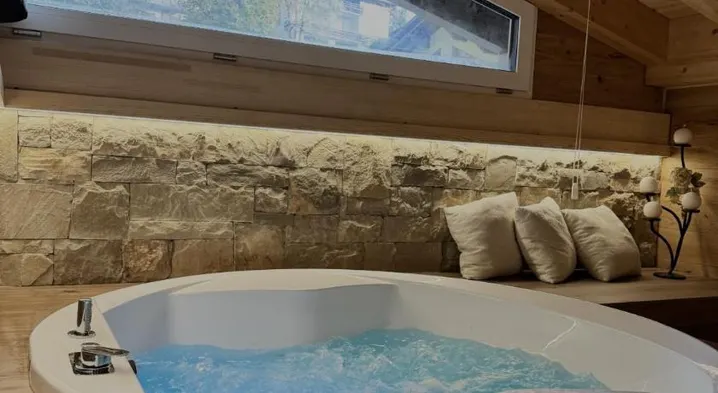 Relax in a luxurious farm stay with spa facilities, hot tub, and stunning mountain views in Zogno.