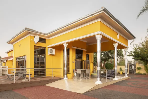 Guesthouse with swimming pool, free parking, and garden views in Moses Kotane, close to local hospitals and stadiums.